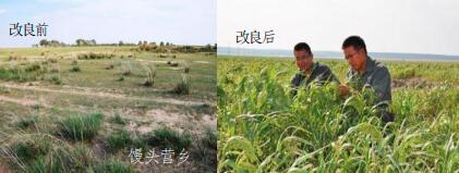 河北张北县 改良效果:碱化度:42%—6% pH: 8.7—7.5
