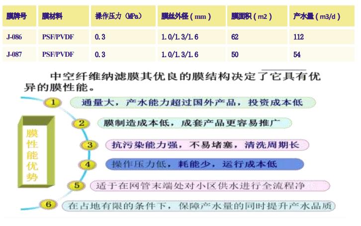 膜有通量大、抗污染、易清洗等优点,性能如下 :